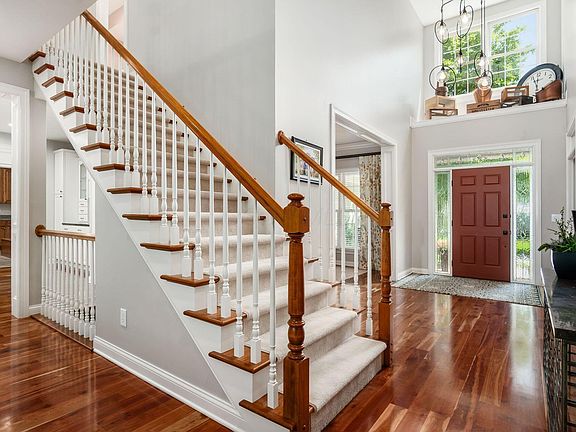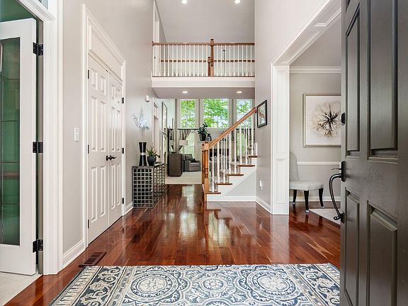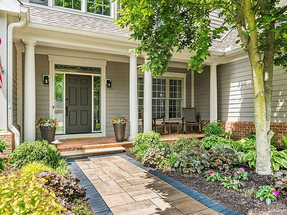 It's all about the location and this one has the most incredible backyard. With $200K spent on landscape/hardscape renovations incl a new driveway & paver sidewalks/patios. The backyard is a private oasis w/ mature trees, multiple patios, the sound of the pond fountain, a putting green (removable if not a golfer), gas fire pit & covered patio area. You will never want to leave your backyard! Inside, the home boasts new carpet on the main floor, 2 story great room, large kitchen w/ granite counters, nice sized mudroom & a 1st floor primary suite w/ his & her closets. 3 good sized bdrms w/ walk-in closets are upstairs. Lower level bar, theater room, 2 rooms that can be bdrms, workout or playrooms. Lots of storage space. Pride of ownership is evident throughout the home. Close to clubhouse.