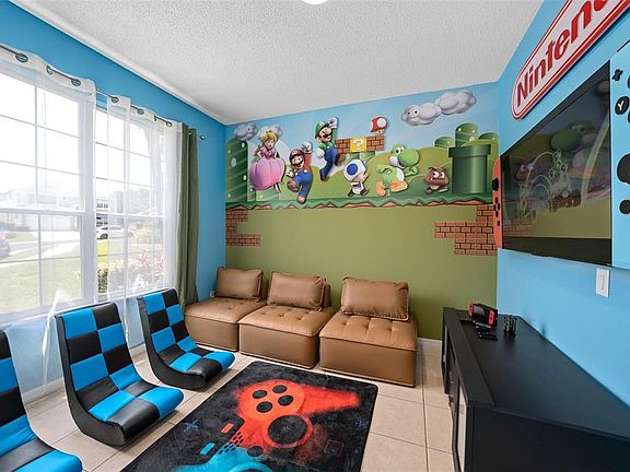 This spacious 7-bedroom, 4.5-bathroom single-family pool home in the gated Emerald Island Resort checks every box for the savvy investor. With 2,914 sq. ft. of living space on an oversized 10,149 sq. ft. cul-de-sac lot, this fully furnished home is a heavily booked short-term rental located less than 5 miles from Walt Disney World. Step outside to a large screened-in pool and spa with a newly resurfaced finish (2022), expansive covered deck, and plenty of room to lounge in the sun or shade. Inside, you’ll find a bright and open layout with a spacious kitchen, family room, and two owner’s suites plus five additional bedrooms, perfectly designed for large families and groups. A dedicated game room adds extra entertainment value for guests. Recent upgrades make this a worry-free investment: 2 new A/C units & pool motor (2022), new roof & exterior paint (2019), new water heater with garage A/C function, new sliding glass door to pool (2023) ,new flooring (2023) for staircase, upstairs bedrooms, and downstairs master, new countertops throughout, garage floor epoxy (2023), custom feature walls in all rooms. Emerald Island Resort offers resort-style amenities including a clubhouse with fitness center, tiki bar, sauna, spa, tennis courts, mini golf, playground, and community pool. Conveniently close to Disney, Universal, SeaWorld, shopping, dining, and all Orlando attractions. Venture a little further and enjoy world-famous beaches, both the Space Coast and Gulf Coast are just about an hour away. This property is short-term rental approved, fully furnished, and income-producing from day one. Whether you’re looking to expand your vacation rental portfolio or secure a proven Disney-area investment, this home is a must-see.