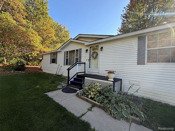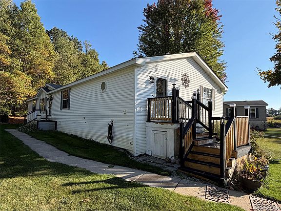 Tucked away in the back of a quiet Tyrone Hills, this spacious 3-bedroom, 2-bath home offers the perfect blend of privacy and convenience. Backing up to a beautiful wooded area, you’ll love the peaceful setting complete with vibrant flower gardens and a cozy fire pit — perfect for relaxing evenings outdoors. Inside, you’ll find two separate living spaces, a formal dining area, and a generous eat-in kitchen with a large island ideal for entertaining or everyday living. All appliances stay, making this home truly move-in ready. Major updates include a new roof in 2021 and new furnace & A/C in 2020, giving you peace of mind for years to come. Don’t miss this chance to own an affordable Fenton home with charm, space, and a fantastic setting. Schedule your showing today! Lot rent is $600/ month.