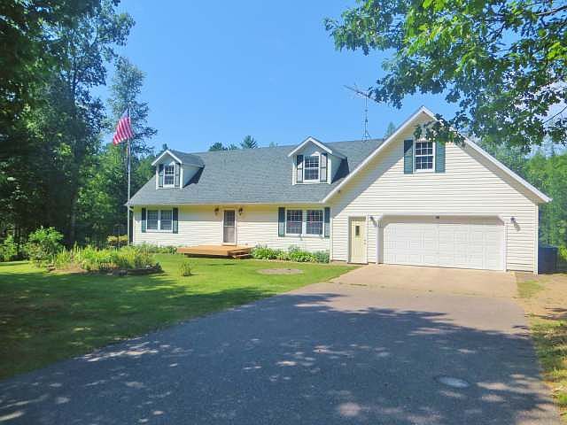 Welcome home! This charming Cape Cod has it all and is conveniently located a couple minutes west of Minocqua. The timeless design makes it easy to imagine moving in and feeling right at home. A classic floor plan with spacious kitchen/dining, main floor laundry, comfortable living room, bedroom, full bath and master suite w/walk-in closet & full bath featuring a whirlpool tub! Upper level has "storybook" bedrooms with dormered windows upstairs, full bath and reading nook. The lower level offers a large rec room/family room, custom bar, plus walkout patio, addtl space with egress windows and tons of storage. Enjoy natural gas, central air, charter cable/hi-speed internet and attached 2 car garage. Complete privacy, yet close to town!! This won't last!