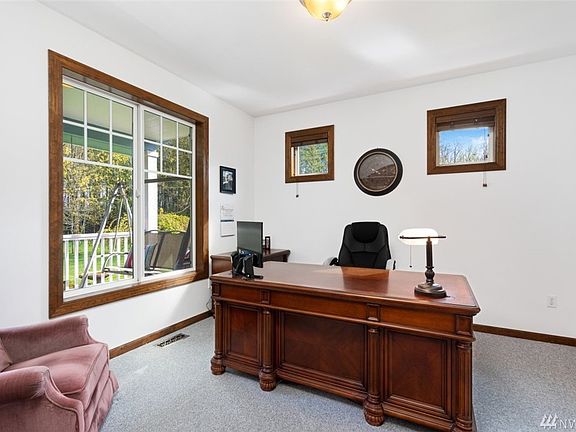 Beautiful 2-story Craftsman home & barn on 10 acres. Private, fenced, pastoral setting. Chef's kitchen with double oven, large island, walk-in pantry & butler's pantry with custom cabinets throughout. Formal dining room and breakfast nook, living room with 2-story ceiling. Large study. Rich walnut hardwood floors. Stunning fireplace with custom woodwork. Large covered country porches with stamped concrete. Storage galore. Freshly painted exterior. Barn, greenhouse, 30+ fruit trees & raised beds.