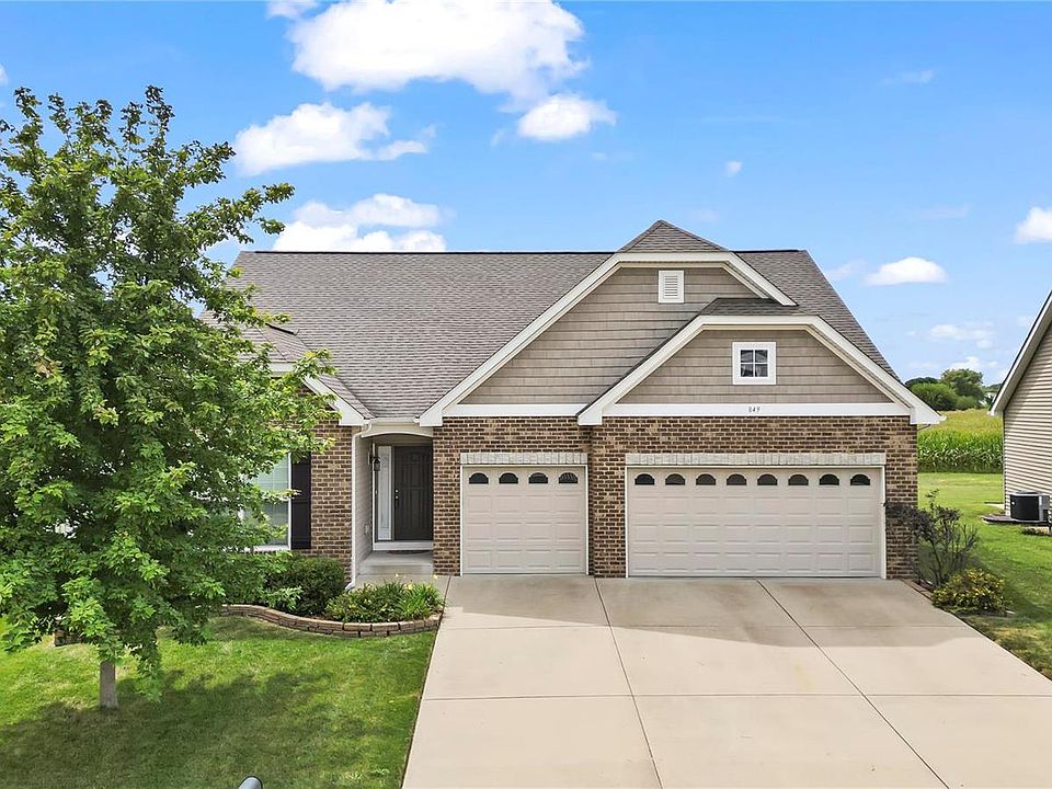 Beautiful ranch-style home featuring 3 bedrooms, 2 bathrooms, & a 3-car garage. Built in 2017, the home has newer mechanicals and roof. The engineered hardwood floors in the great room, dining room, & kitchen shine thanks to the wall of windows in the family room. The kitchen boasts a center island, stainless steel appliances, & granite countertops. With 9-foot ceilings throughout the main floor, the dining room opens to a backyard that backs to farm fields, offering a superior exterior lot. The divided bedroom floor plan ensures privacy in the primary suite, which includes a large walk-in closet and a spacious en-suite bathroom. The other two bedrooms share a full bath on the opposite side of the home. The main floor laundry is conveniently located off the central hallway, in its own separate room, not a walkthrough from the garage. The unfinished lower level has rough-in plumbing for an additional bathroom, an egress window for a bedroom, plus space for a family room.