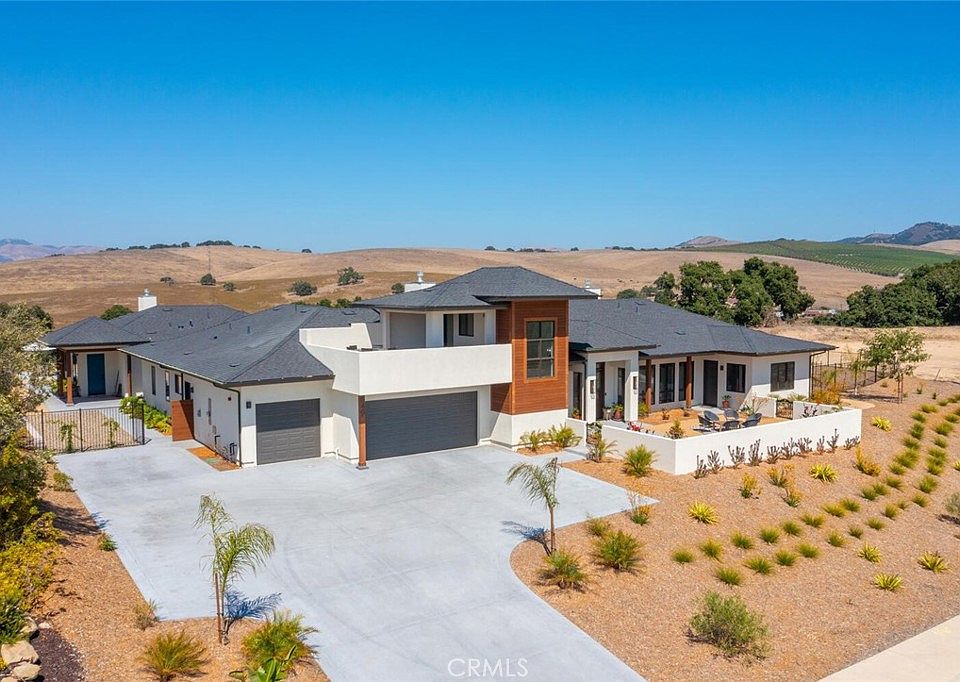 Built in 2022, this luxurious property includes a 4 bedroom/4.5 bath main home with an attached 3 car garage, and a 2 bedroom/1 bath guest home. You’re sure to enjoy single-level living with the impressive architectural beauty of the high ceilings, custom cabinetry and high end details throughout. The amazing courtyard and impressive formal entry welcomes you to the spacious living room with fireplace, bar area with wine fridge and the beautiful kitchen featuring Caesar stone counters, double oven, stainless steel appliances and generous pantry. You’ll immediately be drawn to the incredible outdoor space including a breathtaking pool and hot tub, impeccably landscaped yard and multiple areas to entertain, unwind and enjoy your very own resort-like oasis. The primary suite offers a relaxing and private escape, complete with a cozy fireplace, walk-in closet and en-suite bathroom with dual vanity, shower and soaking tub. The three sizable bedrooms each have their own attached bathroom and walk-in closet. Make sure to notice the large bonus room, ideal for a playroom, office or second living area. Don’t miss the second story viewing patio, perfect for taking in the amazing panoramic views with a glass of wine in hand! The stand alone 1200 square foot guest home offers privacy and the same high end finishes you’ll find in the main home, along with its own separate entrance and outdoor space. Additional highlights include over-sized indoor laundry room and owned solar. This one of a kind property has been thoughtfully designed to create a remarkable living experience of luxury and comfort, don’t miss it!