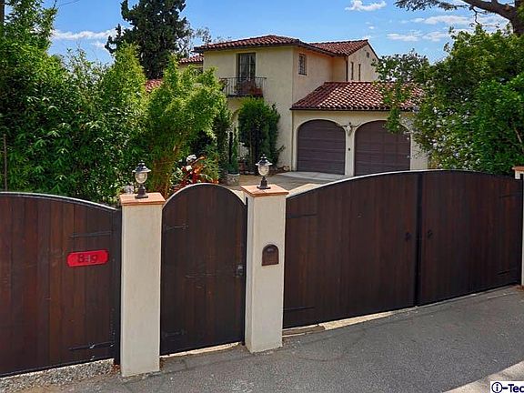 Rare opportunity to live in a Paul Williams Spanish high atop the a hill with shocking views of the world. Vacant and ready to go. , Up a private road and behind gates, this compound is the ultimate luxuriously appointed sanctuary. Upon entering the foyer you immediately know you are in a very special home. The living room has enormous windows drenching the room with light and features a fireplace and hand made sconces. The large open kitchen is beautifully appointed with top of the line appliances including a plumed in espresso system. The master suite with private bath has french doors to a private terrace overlooking the world. This home is a rare a special treat to live in. You will not want to leave.