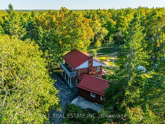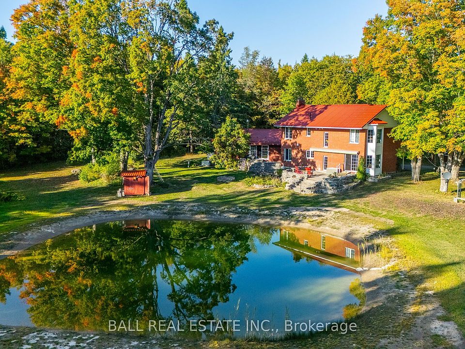 Just minutes from Bobcaygeon, this extraordinary property offers the perfect blend of privacy, space, and lifestyle. Set on 47 acres of natural beauty with a pond and private trails, its a dream come true for outdoor enthusiasts, families, or anyone seeking their own private retreat. The 1995 custom brick 2-storey home is filled with natural light, thanks to its beautiful windows and open views. Designed for family living, it includes a full in-law suite ideal for multi-generational living or hosting guests. The main floor features spacious open-concept living and dining rooms with built-ins, a powder room, and a cozy sitting area with patio doors overlooking the pond. The kitchen offers plenty of space to gather, complete with eat-in area and walk-out to the back patio. Upstairs, you'll find three generous bedrooms, a 4pc bath, and a gorgeous office/library with more picture-perfect views. The basement provides a large rec room, storage galore, laundry, a 3pc bathroom, and a walk-up to the backyard. Attached to the main home is the original 1960s cottage, seamlessly blending history and charm. This secondary dwelling includes an open-concept living area with wood stove, an additional bedroom, and a renovated 3pc bath a perfect guest suite or rental opportunity. Step outside to discover a property built for both relaxation and function: a detached 4-car garage with paved driveway, a cedar bunkie for guests or kids, and wide-open acreage ready to explore. With a drilled well, septic system, metal roof and Generac backup, this home offers peace of mind and low-maintenance living. Whether you're looking for a private family retreat, a multi-dwelling investment, or simply the space to live life your way, this 47-acre property delivers it all.