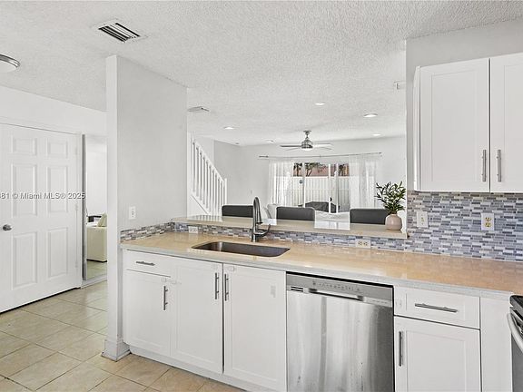 Great updated 2-bedroom, 1.5-bath townhome in the desirable gated community of Malibu Bay in Pembroke Pines features a updated kitchen with white shaker cabinets, quartz countertops, and stainless steel appliances, along with tile flooring on the first floor and new vinyl floors upstairs. The primary bedroom offers vaulted ceilings and a spacious walk-in closet, while the primary bathroom includes an updated vanity. Additional highlights include extra storage under the stairs and outside the unit, a fenced-in backyard, a new roof, and fresh paint. Community amenities include a clubhouse, fitness center, pool, and tennis courts, with an HOA that covers roof repairs, exterior painting, lawn care, cable TV, and Wi-Fi. Low association fee of $184 per month and $402 per quarter total $318 per month. Conveniently located near schools, shopping, and major highways, this home provides both comfort and convenience.