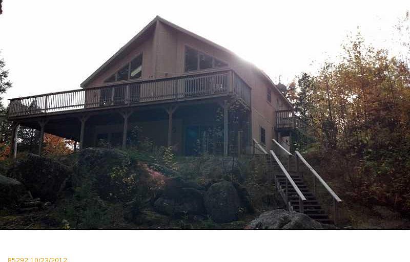 Fairly new chalet style home with large deck overlooking the lake. Home has hardwood floors, bedrooms on all three levels, and even has a small sand beach. Property is being sold "as is, where is".