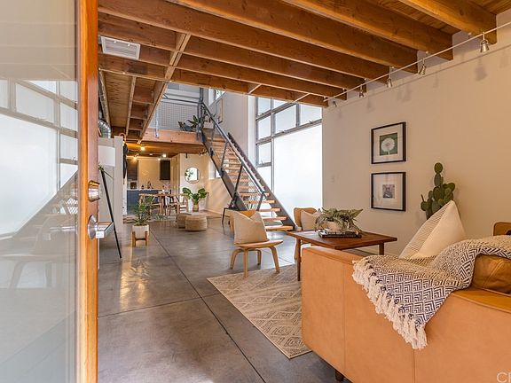 Welcome to the Courtyard Lofts, originally designed by award winning architectural firm Interstices! This intimate 16-unit community is home to some of the most unique lofts in Downtown Long Beach, and unit #H (aka 835 Pine) is no exception! The open floor plan features a large living space, two-story ceilings with exposed wood beams, dining area and kitchen, with a second floor that is ideal for a separate sleeping areas and office space. Natural light pours in through the wall of windows and the unit has new paint throughout. In the recently remodeled kitchen you will find quartz countertops, beautiful subway tile backsplash, Double door Stainless Fridge, gas range, dishwasher and disposal. Newly replaced A/C Heat Unit, Glass shower doors, New Upstairs Flooring, Black Hex Bathroom tile, Sink Vanity , recessed lighting and, remote adjustable pocket blinds and Palm Leaf design Ceiling Fan. Ecobee Smart Thermostat w/,Alexa, Built in Alarm system, Upper Balcony Deck and lower entrance Patio. This unit also includes 1 car garage space w/ storage and 2 remotes. The Courtyard Lofts are nestled on the upper end of the Pine Avenue dining and shopping district, with metro stations nearby, and now open Rose Park Roasters coffee shop! Easy access to Beach, Restaurants and the 710 Fwy.