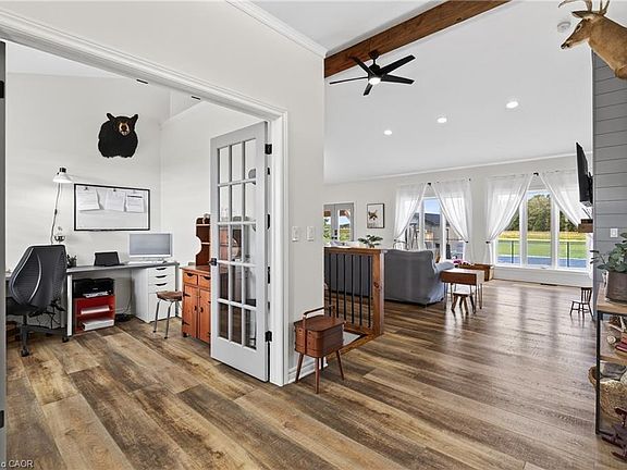 Experience the perfect blend of luxury and comfort in this stunning 1,902 sq. ft. bungalow set on 2.09 beautifully landscaped acres. Fully renovated main level and truly move-in ready. This 3 bedroom, 2 bath home is designed to impress. Step inside to find Luxury Vinyl Plank flooring throughout, freshly painted interiors, and a gorgeous modern kitchen with a breakfast bar, ideal for morning coffee or casual entertaining. The spacious great room boasts soaring cathedral ceilings, custom fireplace, and built-in shelving, creating the perfect gathering space for family and friends. The 1,853sq ft partially finished basement offers endless potential. Outdoors, you’ll fall in love with the in-ground pool with nothing but open space, offering the ultimate private oasis. The backyard deck features both a cozy covered seating area along with a covered culinary space, perfect for summer barbecues and evening entertaining. For hobbyists or those with a love for mechanics, the separate serviced shop (with both water and hydro) provides ample room for projects, storage, or toys. This property truly has something for everyone inside and out.