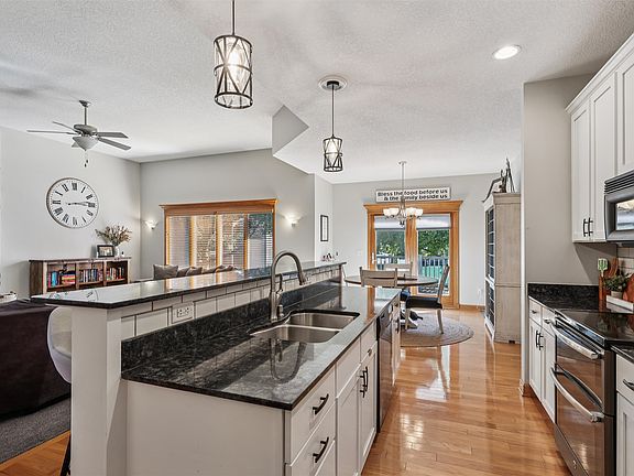 Welcome home to this beautifully updated ranch townhome, full of comfort and charm! With 4 spacious bedrooms, 2 on the main level and 2 in the finished basement, there’s plenty of room for everyone to spread out and feel right at home. The completely remodeled kitchen is the heart of the house, featuring bright white cabinets, sleek countertops, and lots of space for cooking and gathering. The open living area feels bright and airy with its high ceilings and stunning stone fireplace, perfect for cozy nights in. You’ll love the updated bathrooms, thoughtful finishes, and the front bedroom’s custom shelving that creates a perfect reading nook or quiet retreat. Downstairs, the finished lower level offers even more living space for guests, a home office, or a play area. Step outside to the deck and poured patio, ideal for grilling, relaxing, or enjoying a peaceful evening. The 2-car attached garage provides convenience and extra storage, making everyday life a little easier. With fresh paint, stylish updates, warm details, and an easygoing layout, this townhome has everything you need and more. Come see why this beautifully refreshed home is the perfect place to start your next chapter!