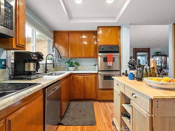 Welcome to Woodcreek - nature at your doorstep. Nestled in the Woodcreek community, where scenic eucalyptus forests and seasonal creek offer a peaceful, nature-filled lifestyle, this upgraded 2-bedroom, 2-bath home is a rare find. With 1,205 sq ft of thoughtfully designed living space, this home blends comfort with modern style. The updated kitchen features granite countertops, a convenient no-touch faucet, stainless steel double ovens, built-in microwave and dishwasher perfect for everyday living and entertaining. Both bathrooms have been tastefully renovated with granite-topped vanities, designer tile shower, glass enclosures and stylish fixtures. Sep outside to your private backyard a private bird sanctuary complete with lush landscape, tranquil pond and fountain - an ideal spot for morning coffee or evening relaxation. Enjoy the beauty and tranquility of nature with all the conveniences of modern living in this charming Woodcreek home.