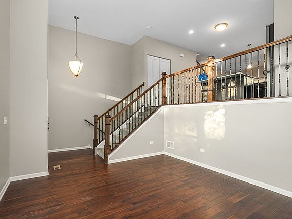 Welcome home! Terrific townhouse loaded with upgrades less than 1 mile to Metra station, and surrounded with tons of retail & dining options. This versatile floorplan allows for convenient living with multiple levels, and several different living spaces. Upon arrival, you will be greeted with hardwood flooring in the spacious living room with vaulted ceiling, and a wood staircase to the heart of the home where the kitchen resides. Enjoy all the amenities of a high-end kitchen including tons of cabinet space, stainless steel appliances, island, granite countertops & breakfast bar plus a large walk-in pantry. There's a large dining space open from the kitchen & flows into the family room area adjacent to the powder room on this level. Check out the 2nd floor with a terrific master suite, large 2nd bedroom, loft space, hall bath, plus laundry room. The master suite is private and spacious with recessed lighting, walk-in closet, & luxury bath including double raised vanity, solid surface countertops, oversized shower with body jets & glass surround. There's also access to the laundry room right through the the master bedroom. Wait, there's more! The lower level provides additional finished living space, great for a rec room or workout space. The attached 2 car garage is just steps from the entry, providing convenient direct access to inside the home. Other notable features include iron railing spindles on the staircases, new sump pump 2024, deck off the dining area, dishwasher replaced 2024, and a whole house surge protector. This is a must see!