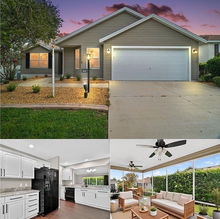 BEAUTIFULLY RENOVATED 3/2 WISTERIA MODEL with NEW ROOF (2025) and NEW HVAC (2024) in the highly desirable VILLAGE OF LARGO! This impressive home with a 2-car garage has been thoughtfully updated from top to bottom, blending modern style, high-quality finishes, and an unbeatable central location. From the moment you arrive, the freshly landscaped yard with decorative curbing sets the tone for the charm and sophistication you’ll find inside. Step into an open-concept floor plan designed for easy living and entertaining. The spacious living and dining areas are highlighted by new luxury vinyl plank flooring, elegant light fixtures, and sliding doors that lead to a large screened lanai and rear patio—the perfect setting for gatherings or peaceful evenings outdoors. The redesigned kitchen is a true centerpiece, featuring gleaming granite countertops, refinished white cabinetry with bold black pulls, brand-new appliances, and a bright bay-window dinette. It’s a beautiful and functional space that makes both cooking and hosting a joy. The primary suite is a relaxing retreat with luxury vinyl plank flooring, a redesigned master closet, and a spa-inspired en-suite bath offering double sinks, granite counters, white cabinetry, and a walk-in shower. Two additional bedrooms with built-in closets share a stunningly refreshed second bathroom with updated finishes and granite countertops. No detail has been overlooked—fresh interior paint on walls, trim, and concrete floors; new window blinds and door hardware; a WiFi-enabled garage door opener; five new LED fixtures in the garage; updated smoke detectors; all-new plumbing fixtures (including toilets); new ceiling fans and light fixtures throughout; and replaced electrical outlets and switches. Every upgrade provides convenience, comfort, and peace of mind. Enjoy the Florida lifestyle outdoors with a spacious screened lanai and rear patio, perfect for relaxing in the sunshine or entertaining friends. Ideally located in the Village of Largo, this home is just minutes from Lake Sumter Landing and Brownwood Paddock Square, plus you’ll be close to Havana and Mallory Hill Championship Golf & Country Clubs, Bacall, Canal Street, and Colony Cottage Recreation Centers, multiple pools including Hadley, Amelia, and Largo, as well as pickleball, dining, shopping, medical, and more along CR 466A. This move-in ready Wisteria Model combines luxury, convenience, and location all in one. Don’t wait—schedule your private showing or virtual tour today and experience The Villages lifestyle at its finest!