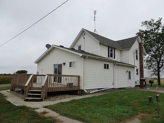 acreage with 10 acres, has cattle set up with fenceline bunks, richie cattle water with 100 head capacity. good producing 4 plus acres of alfafa crop with fence. 40x30 cemented shop with open front shed attached to the back. 2 700 bu grain bins. well insulated older house with a good foundation on property. excellent view and location. propane heat and central air.