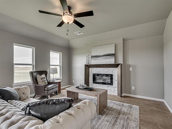 Welcome Home to Timeless Elegance and Modern Comfort! Every home has a story, and this one begins with a perfect blend of style, comfort, and ample space. From the moment you step inside, you'll fall in love with the impeccable craftsmanship and attention to detail that sets this home apart. The heart of this home is the gourmet kitchen, adorned with quartz countertops, stainless steel appliances, cabinets that reach the ceiling, a decorative tile backsplash, and the timeless beauty of wood-look tile in the main living areas. It's a culinary haven that combines functionality with aesthetics. The home is bathed in natural light, creating an inviting ambiance throughout the kitchen, dining area, and living room. The thoughtful design welcomes everyone home. Discover unique light fixtures that add flair and character to each room, creating a distinctive and stylish atmosphere. Comfort and Extras: Enjoy the extras that make this home truly special, including ceiling fans, wood tile flooring, a security system, and a covered patio—an ideal space for outdoor relaxation. Storage Galore: This home is designed with storage in mind. Custom cabinetry, a mud bench, large closets, a well-appointed laundry room, and even attic storage ensure that every inch of space is maximized for your convenience. Enjoy your half acre of privacy and a 10-year warranty from RWC. Welcome Home!