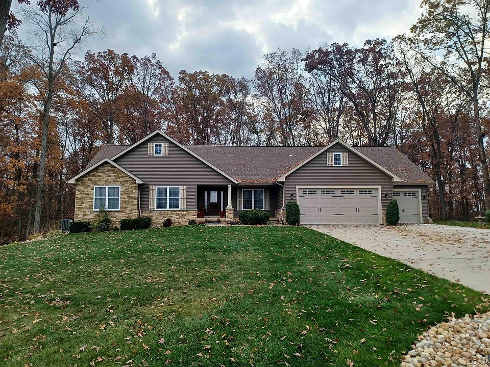 Welcome to 'Living at Loch Erin'! Once you tour this custom built ranch home I'm sure you will see why the current owners love it! Quality built by James Root Builders less than 10 years ago, this stylish ranch home features 3 bedrooms and 3 full baths with a fully finished walk out basement. The lower level includes a large open family room/exercise room combination and 2 additional rooms for your personal use. Nice kitchenette and full bath round out a great lower level. On the first floor you will appreciate the open design concept for functional living at it's best. Gourmet kitchen with dining nook, great room with fireplace, formal dining room, master bedroom suite, 2 additional bedrooms, guest bath and first floor laundry for your convenience. Living at Loch Erin means lake toys and fun memories! The attached 5 car garage will store your cars and toys with room to spare. Lake Access and dock space available a short golf cart ride away. Come take a tour and visualize yourselves sitting on your front porch chatting with the neighbors, enjoying a bonfire off your patio, peacefully entertaining on your deck grilling out or just enjoying mother nature with your wooded lot. This home offers much to appreciate!