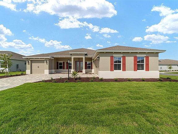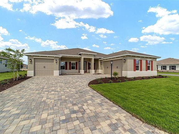 Stunning New Construction – Aberdeen Model in Balfour at On Top of the World! Sophisticated design meets flexible living in this brand-new Aberdeen model on a premium corner! This 3-bedroom, 3-bath, offers a spacious open layout with a flex room featuring elegant French doors. The split 3-car garage provides ample storage and convenience, while the French entry doors welcome you into a bright, tile-floored interior. Enjoy seamless indoor-outdoor living with a 3-panel sliding door that opens to the screened lanai. This thoughtfully designed home includes two master bedroom suites — perfect for multi-generational living or extended guest stays. The primary suite is accessed through double doors and showcases tray ceilings, dual walk-in closets, and a spa-like en suite with dual vanities, a zero-entry tiled shower, and a built-in bench. Situated in the sought-after On Top of the World 55+ community, residents enjoy resort-style amenities, a vibrant social scene, and the peace of mind of a brand-new, move-in-ready home. Call for your private showing today!