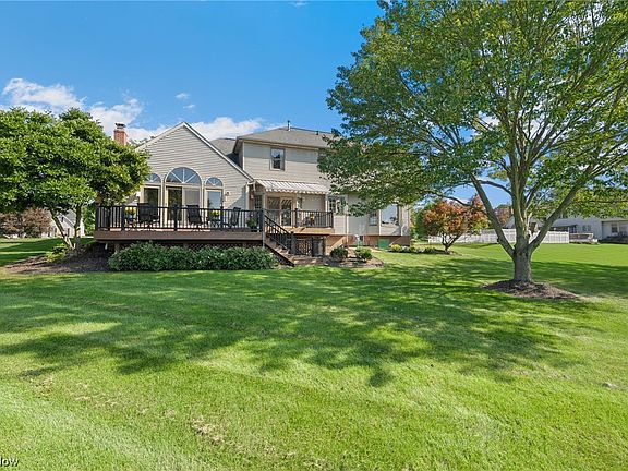 Welcome to this spacious, one-family-owned brick front home located on over .94 of an acre premium property on a cul-de-sac street in the Towpath Park community in Sagamore Hills, w/ 3-car side-entry garage, 2-level Timbertech deck w/ retractable awning & park-like backyard. This home features 4 bedrooms, 2 full & 2 half baths & over 4,111 living sq ft including a professionally finished basement w/ half bath. An updated eat-in kitchen features large center island, quartz countertops, walk-in pantry, gas stove & dinette area w/ access to the deck. Vaulted ceiling, brick fireplace & lots of natural light in the family room. A formal dining room, additional living space & 1st-floor office completes the tour. The owners' suite includes a walk-in closet & en-suite bath. RECENT UPDATES include: Replaced roof (2016), furnace & A/C (2021), replaced & enlarged deck w/ Timbertech composite decking (2016), installed quartz countertops in kitchen (2018), and replaced stove (2018), dishwasher (2017) & microwave (2022). Other improvements over the years include: Finished the basement, added a 1/2 bath, replaced flooring in kitchen & master bath, faucet, sink & toilet in 1st-floor bath, landscaping, hot water heater & more. INCLUDED are all kitchen appliances (except fridge) & window treatments. Conveniently located in between Akron and Cleveland w/ easy access to OH-8, I-480, I-271, recreation center w/ many amenities including gym, pools, etc.. Near lots of shopping, restaurants & parks.