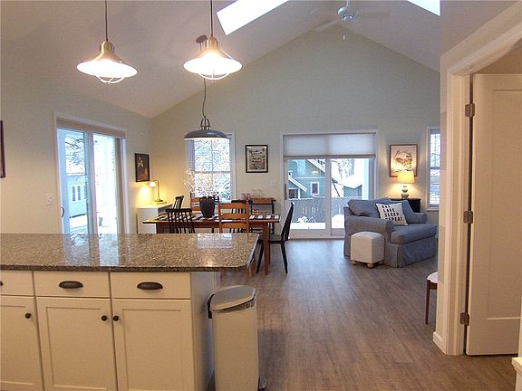 Private dockOpen floor planOversized open porchSpacious great roomLake viewsVinyl plank floorsDual sliding doors