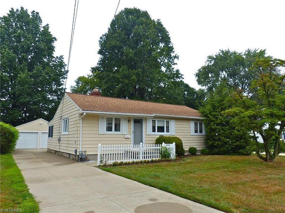 Serene setting in great Mentor location, the spacious back lot opens to Osborne Farms horse pasture. Easy living ranch in move-in condition with white picket fence, Gleaming hardwood floors, corner gas fireplace can be enjoyed in the eating area and living room, white kitchen with granite counters & ceramic tile flooring new in 2010, sun porch full of nature light and a great place to enjoy a summer meal, remodeled(2011) full bath with custom granite top and attractive vessel sink, 3 bedrooms with HW floors, finished rec room with dry bar plus storage and utility rooms, B-Dry system w/warranty, large patio for entertaining, 2 car garage, New furnace in 2012, New roof in 2010 on house & 2011 on garage, replacement windows, 12 month home warranty. Welcome Home!