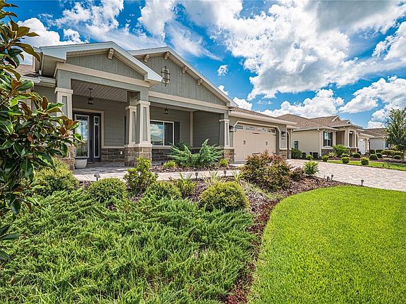 Discover luxury living at its finest in this pristine home in Candler Hills at On Top of the World, Ocala’s premier 55+ community. Built in 2021, this 2-bedroom, 2-bath home with a large flex room offers 2,099 sq. ft. of thoughtfully designed living space enhanced by high-end upgrades. From the hand-painted foyer ceiling to crown molding, wainscoting, and designer finishes, every detail adds elegance. The gourmet kitchen features quartz countertops, a gas range, tiled backsplash, and soft-close cabinetry, opening to a bright, open-concept living area. The primary suite is a true retreat with custom his-and-her closets and a spa-inspired bath. Enjoy beautifully landscaped grounds, solar-lit paver walkways, and a spacious 3-car garage (24' x 32'2") that offers ample storage and parking, complemented by a dedicated golf cart area (12'3" x 11'2")—complete with epoxy floors for a clean, durable finish. Additional highlights include luxury vinyl plank flooring, solar guard windows, custom shades, and a well-appointed laundry room with sink and built-in storage. Living here means access to world-class amenity, clubhouse, multiple golf courses, Community pools, fitness centers, clubs, and endless recreation, all within the vibrant lifestyle of On Top of the World. Don’t miss this opportunity to own one of Ocala’s most desirable communities.