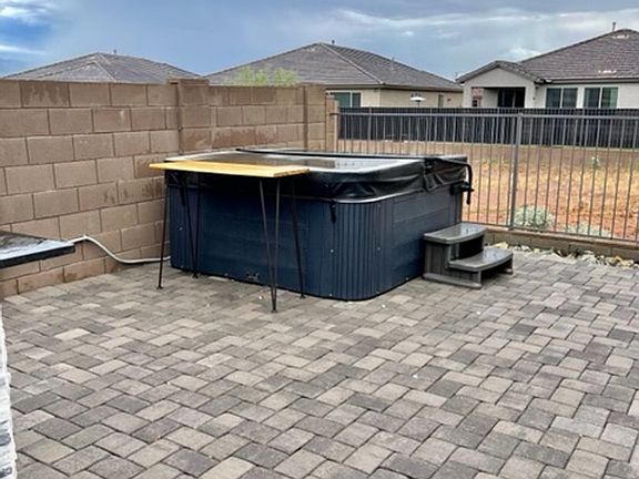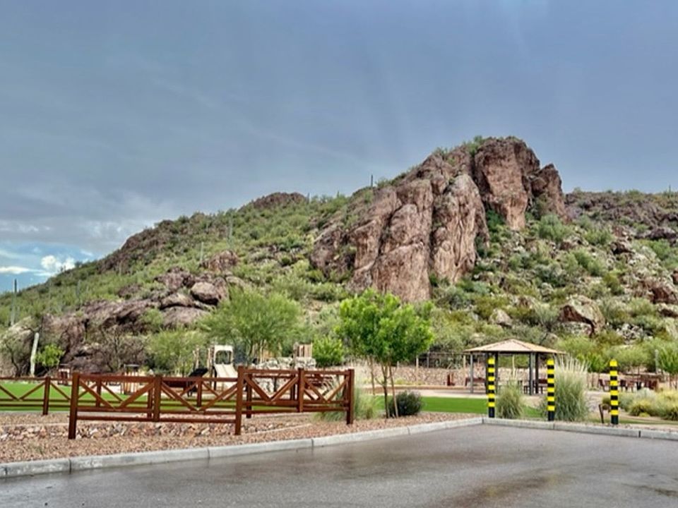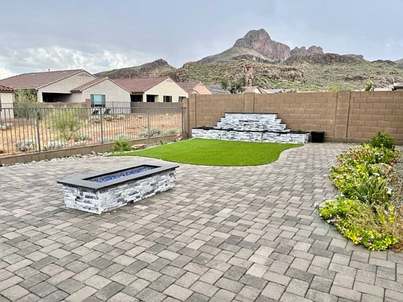 Located in desirable Lazy K Bar Ranch gated community near I-10, schools, and shopping centers; 1-story Pulte Barletta plan boasts 2138 square feet with 3 beds, 2 full baths, bonus room AND den/ office. PLUS SOLAR PANELS so electric is a minor monthly meter read charge Professionally landscaped backyard features built in BBQ, hot tub, gas fire pit and water feature to enjoy while taking in the GORGEOUS mountain views! Kitchen features a gas stove, microwave, fridge and dishwasher, as well as buffet area and island for entertaining. Upgraded tile floors throughout and carpet only in 3 bedrooms. Interior upgraded 8ft doors, quartz kitchen & bath countertops, low threshold glass expanded walk-in shower at master bath, and ceiling fans in all rooms. Bonus features: wired for alarm, soft water system, tankless water heater, and 2 car garage. Pets negotiable. Equal Housing Opportunity.