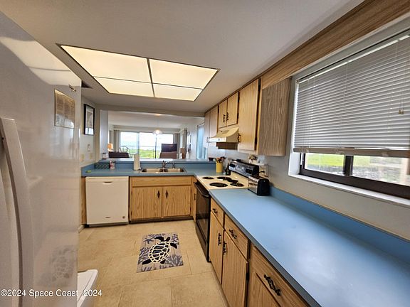 Experience breathtaking ocean views and the soothing sound of waves crashing from this clean and comfortable beachfront condo. Situated at the end of the hallway, right next to the pool, this unit offers privacy and convenience. Relax on the wrap-around porch, perfect for watching stunning sunrises or space launches. The condo is tastefully furnished, featuring unique handcrafted pieces by the owner, and offers ocean views from nearly every room.