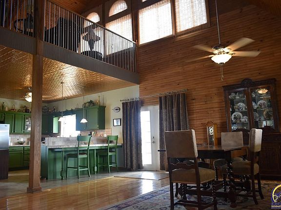 Welcome to a hard to find property. Stick built, metal siding/metal roof, 10 year old custom home connected to a 100 x 100 barn. Barn has some concrete and some dirt; 2 horse stalls included; pond with gazebo; quick access to K-4 Hwy. Home is a log cabin design. 5 year old ground source heating/cooling. Welcome home!