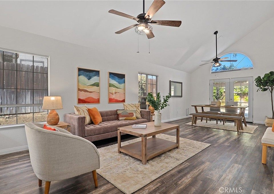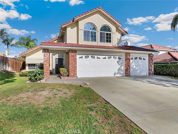 Gorgeous updated two-story pool home in the coveted Orangecrest neighborhood! Be delighted by vaulted ceilings as you step inside to the freshly painted interior of this home. There's an open formal living and dining room off the entryway. The kitchen shines at the heart of the home with a window viewing out to the backyard. It has stainless steel appliances, new quartz counters, and bright white cabinetry. The family room and breakfast nook are on the other side of the kitchen. The brick-framed fireplace anchors the space and a french door leads to the covered backyard patio showcasing the sparkling pool. The backyard offers low maintenance with concrete surrounding the pool and framed planters. Upstairs are three well-sized bedrooms and two bathrooms. The primary bedroom is very spacious and offers a beautiful en suite bathroom with a soaking tub and a separate shower with a double vanity sink. Conveniently located near local markets, shopping, and dining options. Come see all this home has to offer you!