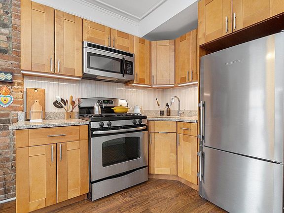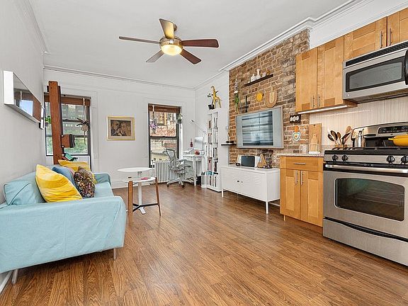 A cozy one bedroom on the top floor of a beautiful brownstone is available in the heart of Park Slope, just one block to Prospect Park. This quiet apartment facing the back with views of lush gardens gives a cozy treehouse feeling, and features a renovated kitchen and bathroom, high ceilings, exposed bricks, and a washer/dryer combo. The roof rights come with this sun-drenched apartment, and you can complete the roof deck and use it for your outdoor leisure!