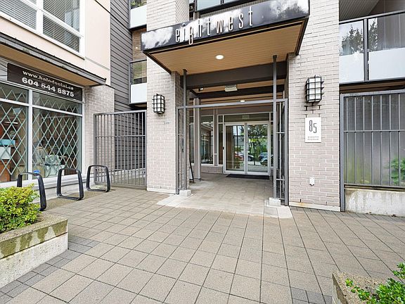 Welcome to Eight West! This bright and stylish 1-bedroom condo offers an open-concept layout with a modern kitchen, granite countertops, stainless steel appliances, and a spacious island perfect for casual get togethers. Plenty of room for that dining room table too! Immaculately kept, all you need to do is move in. Enjoy a large covered balcony perfect for relaxing or entertaining. This home also features in-suite laundry, secure parking, and separate storage. Full rentals allowed. Building was built in 2012/2013 and has been well maintained ever since. A walk score of 86 means it's conveniently located near shops, schools, parks, and transit.