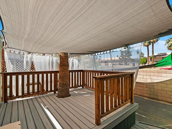 Enjoy the amenities of Palm Springs and Ramon Park. This 1 Bedroom, 1 Bath mobile has been completely remodeled and updated with high quality products. Nice fenced private yard with a new custom built 10x12 shed which can be used for an art studio, a office or extra bedroom for guests with a few alterations. There is a two-level custom-built private deck for relaxing and entertaining with views of the San Jacinto Mountain Range, Private yard with sprinkler system. Open floor plan that extends throughout the mobile. The kitchen has new stainless-steel Refrigerator with water line, gas stove, quartz counters. Windows are all dual pane with custom window coverings, Separate laundry area with a full-sized washer and dryer. New bathroom with oversize shower, the bedroom can accommodate a king size bed and has ample closet space. All upgrading has been permitted. This mobile is located near shopping, restaurants, hiking trails, public transportation, and only 3 miles from the Palm Springs International Airport. All information deemed reliable, buyer to verify.