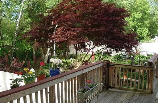 What a wonderful peaceful country setting for this well maintained home! Come sit on the large deck overlooking the beautiful professionally landscaped yard with fish pond you won't want to leave! This home is so welcoming you can feel it when you come through the front door! Living room with picture window, eat-in wood cabinet kitchen, convenient 1st floor full bath, large family room with access to deck. First floor bedroom with french door off deck. First floor laundry room with large closet. Second level offers spacious center hallway can be used as a computer nook or small office area. Large closet storage area, two bedrooms and half bath. Full basement, with plenty of storage space. Younger heating system, security system, under ground sprinklers, 6-8 car off street parking, corner lot near Pranker's Pond. Close to Saugus Center, shopping, public transportation and major highways.