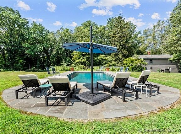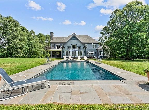 Owner is offering 1 MONTH FREE rent with signed 12-month lease!This stunning custom estate in Easton sits on over four private acres with a long tree-lined driveway. Inside, find more than 6,000 sq ft of elegant living space featuring Brazilian hardwood floors, oversized Pella windows, and a grand two-story foyer with a sweeping staircase. The open layout includes a formal living room, dining room with patio access, vaulted family room with stone fireplace, and a gourmet kitchen with professional appliances, granite counters, a large island, and breakfast nook. The luxurious primary suite boasts vaulted ceilings, fireplace, private balcony, spa bath with jacuzzi and rain shower, plus dual walk-in closets. Additional spacious bedrooms and a separate home gym provide comfort and flexibility. Outside, enjoy a heated Gunite pool, hot tub, stone patio, expansive lawn, and a detached 1,800 sq ft guest house. A three-car garage with Mahogany doors and a full security system complete the package. Close to top schools, Merritt Parkway, and nearby towns, this rare Easton home combines privacy, luxury, and convenience.