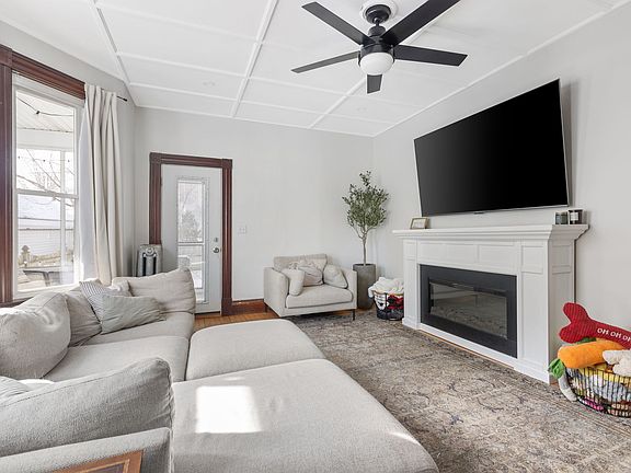 Bright family roomModern kitchenFormal dining roomHardwood floorsCozy sitting areaQuartz countertopsEnclosed wrap-around porch