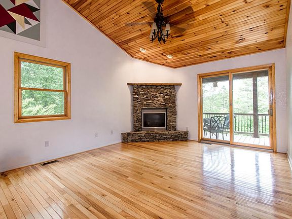 Beautiful mountain view cabin, 10 minutes from downtown Murphy, John C. Campbell Folk School, Harrah's Casino, hospital, & community college. The exterior features a circle drive, mature landscaping, multi level porches & decks with vinyl ceilings & soffits, fire pit area, & a great yard! On the main level, there's an open great room with hardwood floors, cathedral ceilings, oak cabinets, & a rock gas log fireplace, master bedroom with ensuite bath, & laundry room. Basement level has another great room, guest bedroom, and full bathroom. The only restrictions are against junk cars & appliances in the yard and living in a camper or tent..and no HOA fee. Cable high speed internet, good cell service, move in ready! Only 2 homes on the well. What more could you want? Inspections available.