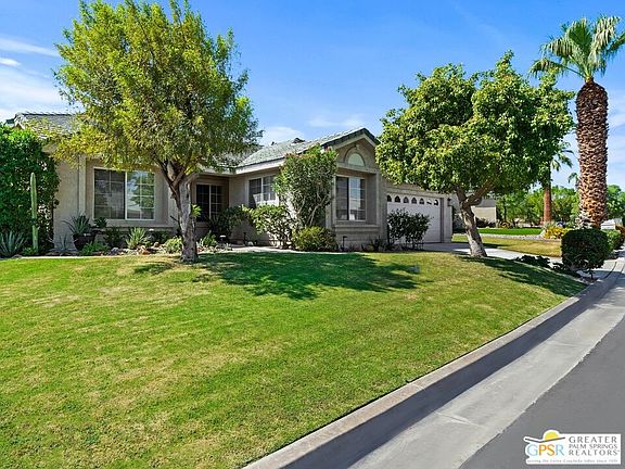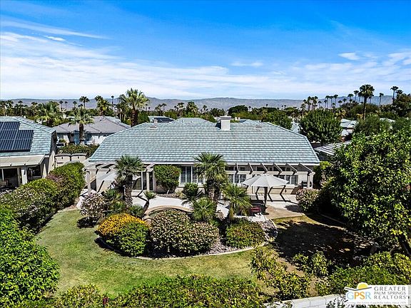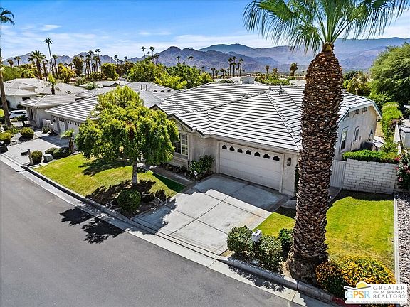 Welcome to your Desert Gem! This unique, tranquil retreat will literally soothe your soul! Beautifully maintained home located in prestigious Belmonte Estates, across from The Marriott Desert Springs. Convenient, centralized location, just minutes from El Paseo shopping & restaurants, Theatre, Golf & Tennis. This beautiful home boasts the perfect natural light and luxury, with three bedrooms/2 baths perfectly laid out on 2002 sq ft. The primary bathroom has been renovated and expanded, creating a spa-like sanctuary! Modern, high-efficiency lighting has been added throughout the home. Spacious, open floor plan with oversized Great room opening into the kitchen, and features a tiled fireplace that looks out to the beautifully landscaped, lush backyard where you will experience gorgeous mountain views & dramatic sunsets! Large master suite with walk-in closet and two well-appointed guest rooms. This SOUTH facing, FULLY PRIVATE backyard is a nature wonderland and is absolutely pristine! Perfect for entertaining, this garden offers a stunning custom spool with eight jets, boulders & calming waterfall. Exquisite, manicured grounds that are a true hummingbird & butterfly paradise! The garden has mature citrus trees, Kool Decking and a custom patio beam structure. Dual zone HVAC and new ceiling fans in Great room & bedrooms. Custom built-in wine & liquor cabinet just off kitchen. LOW HOA dues will be $185/mo. This Palm Desert sanctuary is a MUST-SEE! Unwind. Entertain. Refuel! MAKE SURE AND CLICK THE VIDEO & DOC (Upgrades & Improvements) LINKS!