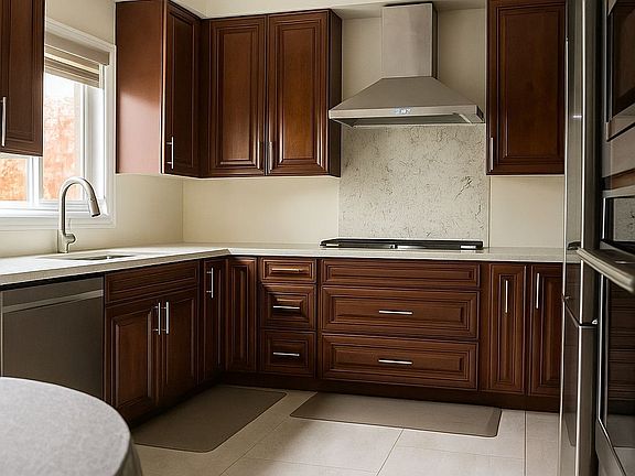 Bright open-concept layoutPot lightsQuartz countertopsModern cabinetryStylish backsplashLarge pantryNewer stainless-steel appliances