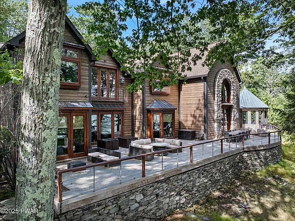 Boulder Point on Lake Wallenpaupack - A true lakefront masterpiece offering over 7,000 sq. ft. of luxury living.This remarkable home features 5 private bedroom suites and 5.5 marble-appointed baths, creating an elegant and comfortable retreat. The grand living room showcases soaring ceilings, a striking fireplace, and walls of glass doors opening to an expansive Trex lakeside deck--perfect for entertaining with unforgettable views.The chef's kitchen is a showstopper with an oversized island, sunlit dining nook, and top-of-the-line appliances. A formal dining room, office/den, and numerous thoughtful details complete the main level.Outdoors, enjoy nearly 200 feet of level, wooded lake frontage, ideal for peaceful mornings or evenings by the fire. An attached 2+ car garage, custom stonework, impeccable landscaping, a gated paver driveway, and additional parking add to the appeal.Privately situated in one of Lake Wallenpaupack's most prestigious communities, Boulder Point offers the ultimate combination of luxury, privacy, and lakeside living.