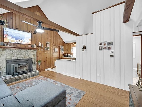 Charming Highland Lakes Retreat! This warm and inviting home blends rustic charm with modern comfort and offers one-floor living with 2 bedrooms, 1 updated full bath, a sunroom, upstairs guest loft, and full basement. The open living area features vaulted ceilings, skylights, and exposed beams, creating a bright and welcoming atmosphere. A stone fireplace adds warmth and character while helping to reduce heating costs. The kitchen's open layout flows seamlessly into the living space, while the sunroom with wood-planked walls and ceiling invites year-round relaxation. Enjoy a large level lot with a spacious deck perfect for entertaining and soaking in the seasons. The full basement offers laundry, storage, and workshop space. Updates include new windows, gutters, water tank, propane line for dryer hookup, whole-house filtration, and luxury vinyl flooring, to name a few! As part of the private, members-only Highland Lakes Country Club & Community Association, residents enjoy access to five lakes, seven beaches, boating, swimming, tennis, pickleball, a clubhouse and year-round activities and events. Ideal for full-time living or a weekend escape!