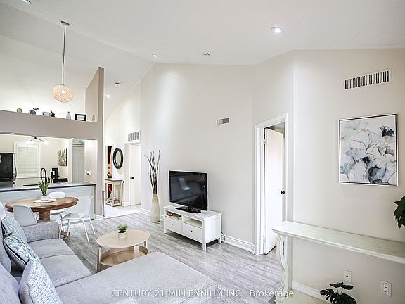 Spacious 2-Bedroom Condo with Soaring Cathedral Ceilings! Welcome to this beautifully appointed 2-bedroom, 1-bath Condo perfectly situated in the heart of Mississauga. Located on the desirable third floor, this unit features dramatic cathedral ceilings that flood the open-concept living and dining space with natural light, creating an airy and inviting atmosphere. Step out to your private balcony to enjoy peaceful views and fresh air-perfect for morning coffee or evening relaxation. The kitchen boasts a modern layout with a breakfast bar, ample storage, and stainless steel appliances, making it ideal for both entertaining and everyday living. The primary bedroom offers two generous closets and a semi-ensuite bath, while the second bedroom (as per MPAC) is perfect for a home office, nursery, or guest room. With modern finishes, this turn-key home is ready for you to move in and enjoy. Enjoy the perks of low-rise condo living with amenities including outdoor pool, BBQs allowed, playground, bike storage, and visitor parking. With one parking space exclusive in the semi-underground included, this unit is conveniently located steps to grade and high schools, parks, community centre, public transit, the future LRT, and just minutes to Square One, highways 401& 403, and Heartland Town Centre. Whether you're a first-time buyer, downsizer, or investor, this is a great opportunity to own a stylish and functional home in a sought-after community. Don't miss your chance!