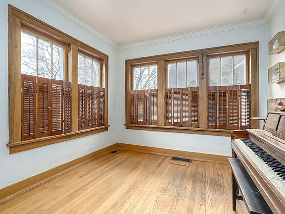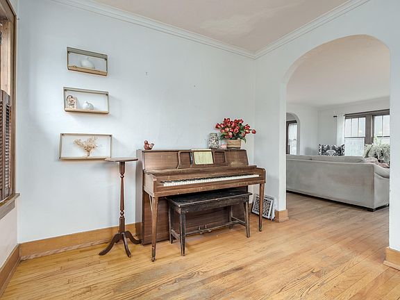 Full of Charm and Character from the moment you walk through the arched doorway with stained glass window. This 3 bedroom 2.5 bathroom home on a double lot close to all amenities is ready for new owners. Wood floors and brick fireplace welcome you to the warm inviting living room which flows into the spacious dining room with access to the brick patio in the backyard. The kitchen includes all appliances. Enjoy the light and bright sunroom/office full of windows. The 1/2 bath completes this level. Upstairs you will find the primary bedroom, two additional bedrooms and full bath. The basement is fully finished with rec room, laundry and 2nd full bath. The attic offers great potential for finishing with exposed brick and wood beams with windows allowing natural light. Two car detached garage, fenced dog run and established gardens. Just a few steps from Piper Park with ball diamond, picnic areas, playground and walking paths.