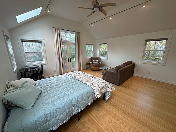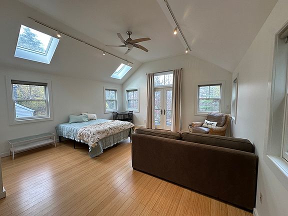**Woodstock Winter Rental** Bright Studio Apartment above a garage, with kitchenette. Freshly painted approximately 504 square feet. French doors to personal deck, with beautiful country views. Ideal location, convenient to many amenities. Rent includes off street parking, electric, grounds maintenance, garbage pick up and snow removal. Tenant responsible for propane and cable/internet if wanted. Location is prime! Less than 2 miles to the center of Woodstock with access to the Trailways Bus route, restaurants, galleries, shopping, music and more. Outdoor enthusiasts will love and appreciate the proximity to hiking, biking, and skiing opportunities. Potential tenant must submit a rental application and current credit report . Renter's insurance required for term of lease. Rented partially furnished for Winter rental.
