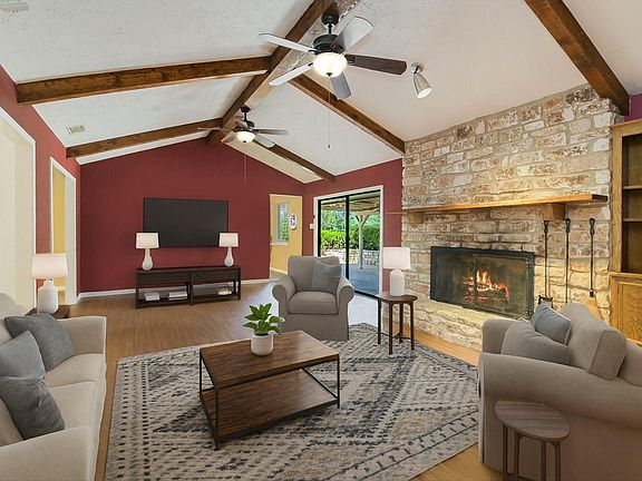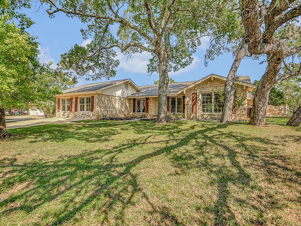 Hill Country Golf Course Retreat - Double Lot and Detached Casita! Introducing an enchanting Hill Country retreat overlooking the scenic 15th fairway and green of the Double J Ranch Golf Club in Wimberley, Texas. This inviting 3-bedroom, 2.5-bath residence (2,739+/- SQ.FT.) rests on two spacious, lots and includes a detached casita (785+/- SQ.FT.) complete with a bedroom, living area, and full bath—ideal for guests, extended family, or a private studio retreat. Inside, the home exudes warmth and comfort with an open layout anchored by a floor-to-ceiling stone fireplace. The kitchen offers seamless countertops, generous cabinetry, and a functional design ready for your personal touch. Recent updates include new carpet in the primary suite and a new roof (2024)—a significant upgrade that complements the home’s enduring charm. The spacious primary suite features a custom walk-in closet, while two additional bedrooms and a full bath down the hall provide flexibility for guests, family, or a home office. While move-in ready, this property also presents a wonderful opportunity to refresh and tailor the interiors to your style, adding modern finishes that will truly make it your own. Outdoors, mature live oaks, native landscaping, and peaceful golf course views create a serene setting for morning coffee or sunrise gatherings on the covered patio. Extra parking, detached Casita, and the added value of a double lot make this home a rare find in sought-after Woodcreek. Just minutes from downtown Wimberley’s charming shops, art galleries, and local dining, this home offers an ideal blend of comfort, potential, and Hill Country beauty. All information deemed reliable but not guaranteed. Buyer to verify all details. Some photos may be digitally enhanced for clarity and appeal.