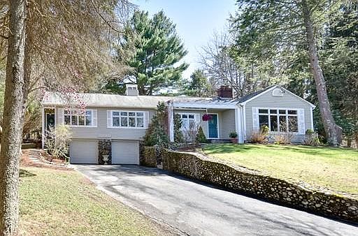 Enjoy one level living in this beautifully updated home. Custom designed with a wonderful floor plan, perfect for a variety of lifestyles. 4 bedrooms include stunning master suite with fireplace, additional en-suite bedroom, spacious fireplaced living room loaded with built ins, formal dining room, updated kitchen with large breakfast area open to fireplaced family room. Lower level has finished playroom. The exterior is lovely and private. There is a huge deck across the back of the house with a firepit, very large, level and open grounds including a fabulous pergola, perfectly designed for all your gardening needs. A departure from the ordinary, yet a very comfortable and livable home!!!