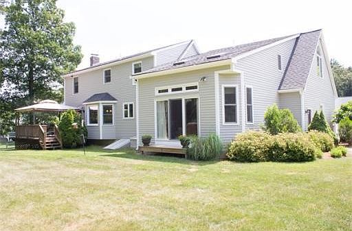 This home is the best value in Wrentham - newly painted, open and bright expanded cape in a picture perfect neighborhood. A large eat-in kitchen is at the center of this home. The kitchen opens to a front to back living room with sliders to a deck and level backyard. Also featured are a newly painted formal dining room and a wonderful cathedral ceiling family room with skylights and atrium doors that lead to the private backyard. A second staircase leads from the family room to a large master bedroom with a cathedral ceiling and walk in closet. The master bath has a Jacuzzi tub and skylight window. Three generous bedrooms and a full bath complete the second floor. Don't let a "drive by" fool you - this home is much larger than it looks from the street! The backyard is great for gatherings, yet made private by the wonderful plantings. This is an exceptional cul-de-sac neighborhood, just a short drive to schools, shopping and recreational activities.