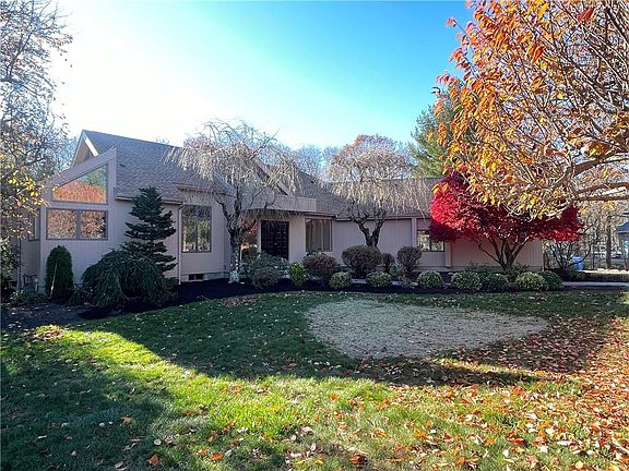 Ridgewood Estates, an exclusive neighborhood in western Cranston, is the setting for this sprawling 3-bedroom, 2.5-bath Contemporary Ranch on a gorgeous 2-acre lot. Its 3,500SF of one-level living will delight you. The open layout with an array of sliding glass doors beautifully integrates the interior and exterior. Soaring ceilings and luminous windows and skylights guide you from the entry to the large kitchen with a handsome array of cabinetry, built-ins, and stone countertops. The beamed great room lets you relax in splendor lit by the gas fireplace with sliders providing walkout access to the rear deck and steps down to the crisply landscaped grounds. The primary suite lets you prepare for the day and pamper yourself with its custom cabinetry, walk-in closet, and ensuite bath providing a luxurious corner soaking tub and large walk-in tiled shower. You’ll be close to both the Alpine Country Club and Cranston Country Club and 15 minutes from the variety of shops and restaurants at Garden City and Chapel View shopping centers. Scenic seaside outings are enjoyed at Stillhouse Cove and Pawtuxet Village providing more browsing and eateries. Interstate-95 connects you to Green Airport and its commuter rail station in 15 minutes and Providence nightlife in just over 20 minutes. COMPLETELY REMODELED THROUGHOUT IN 2024
