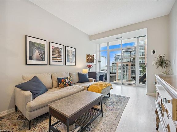 Welcome to Liberty Village, the perfect blend of sophistication, style and fun! With upgrades throughout, this 1 bedroom + den, 1 bathroom condo offers over 600 sq ft of thoughtfully designed space, perfect for urban professionals, couples, or anyone looking to enjoy one of Toronto's most dynamic neighbourhoods. The unit features a modern kitchen with custom cabinetry refaced with a fresh new backsplash (2021) and all the appliances replaced in 2020, including an induction stove, low-profile microwave, fridge, and Miele dishwasher. There is convenient in-suite laundry with a washer and dryer (2020) and a versatile den with a built-in Murphy bed (double) and California Closets for extra storage - ideal for a home office and guests. Custom closets in the bedroom, entryway, and den make storage smart and simple. Enjoy lake views from your private balcony and yes, BBQs with propane are allowed! This unit includes a storage locker, and 1 parking spot located right next to the elevator (roughly five steps) for ultimate convenience. The building has everything, 24-hour concierge service, an indoor pool, bowling alley, games room, golf simulator, movie theatre and a recently renovated gym and rooftop party room. There are also guest suites and visitor parking. The neighbourhood features 3 grocery stores, LCBO, banks, restaurants and cafés, all within walking distance. It is close to BMO Field (TFC games) and Budweiser Stage and steps to Exhibition GO Station, TTC, and the lake (a 15 minute walk away). Also, this is a super dog-friendly community with nearby parks and pet-friendly businesses. This condo offers the perfect mix of comfort, convenience, and lifestyle. Book a showing to see for yourself.
