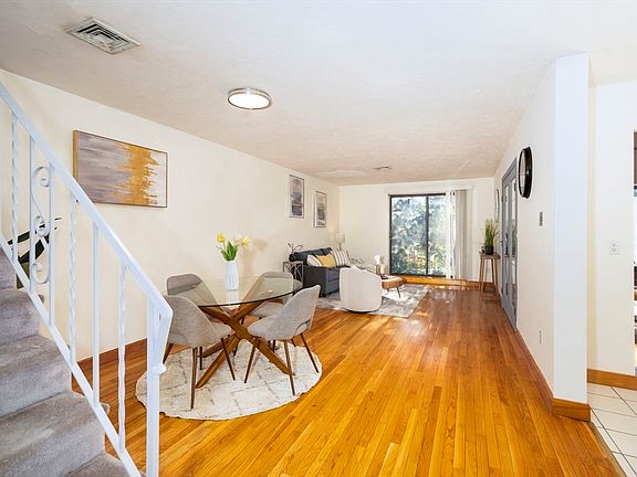 Rare Townhouse in Atlantic House Condominiums – Prime North Quincy Location! This rarely available two-level penthouse townhouse-style unit offers 2 spacious bedrooms and 1.5 baths across 1,364 sq.ft. of living space. The updated kitchen features quartz countertops, and the living and dining areas boast gleaming hardwood floors. Enjoy the comfort of a newer heat pump system with central A/C, in-unit laundry, two private balconies, and two deeded garage parking spaces. The formal dining room can easily serve as a home office or potential 3rd bedroom. Ideally situated just a short walk to North Quincy T Station, schools, shops, restaurants, and with easy access to the highway—this home offers the perfect blend of comfort and commuter convenience.