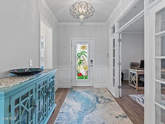 If you have been waiting for a better than new home that is ready to go for a new set of owners, then you are in luck! This Dunwoody Way floor plan is perhaps the most sought-after plan in this community. With its gracious living area, large kitchen with extended island, generous room sizes, dedicated office, golf cart garage, and large screened porch, this home has extremely comfortable living space. When you enter this home, the space is open and airy. If you like to entertain, this layout will give your company plenty of room to enjoy themselves, whether they choose the living room, huge island, or dining area. The gourmet kitchen is a chef's dream with ample counter and storage space, a separate beverage station, upgraded appliances, farmhouse sink and pantry. A UV/charcoal whole-house water filtration system was also added by the sellers. With plantation shutters throughout the home, and upgraded lighting and fans, this home is sure to impress. The master bedroom is quite spacious and will accommodate your furniture with ease. The spa-like ensuite will be your retreat at the end of the day. Complete with a very large, walk-in, tiled shower, there is plenty of space in this dressing area. You may actually be challenged to fill the massive master closet! The guest bedrooms are a comfortable size and on the opposite side of the home for privacy. There will be no need to try to squeeze a desk in a corner here as the dedicated office is plenty big to accommodate a desk and even some exercise equipment. This home offers plenty of storage with its multiple and spacious closets and large garage with additional golf cart area. LVP adorns the main living area of the home, the office, and the primary bedroom, with carpet in the guest bedrooms only. Eagle Run is a friendly, active community with an extremely convenient location near multiple beaches, many golf courses, dining and shopping. You are literally a stone's throw from the shopping and seafood of Calabash, and